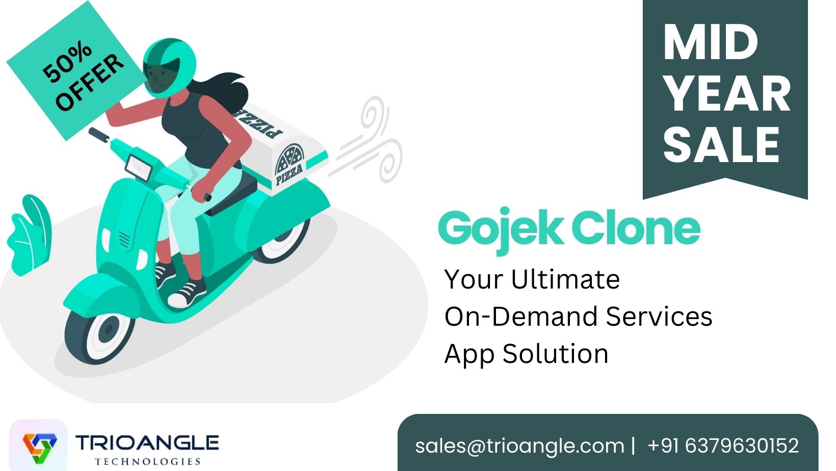 Create your own on-demand super app with our GoJek clone. Offering a comprehensive range of services just like GoJek, our clone script empowers you to revolutionize the service industry. From ride-hailing and food delivery to logistics and more, our GoJek clone has it all. Take advantage of our mid-year mega sale and get an incredible 50% off on the script. Don't miss out on this amazing opportunity to kickstart your business and dominate the market.